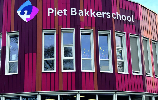 Verwijderen van de bestaande beeldmerken en teksten van het hoofdgebouw te Franeker
